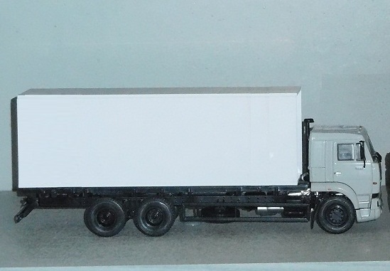 Сборная модель 1:43 Изотермический фургон, длина 7,8 м, высота 2,5 м для грузового автомобиля 6х4 -65117 от SSM, AVD, АИСТ, ПАО КАМАЗ (Клен)