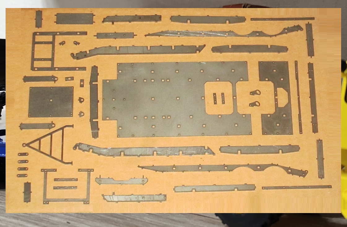 Сборная модель 1:43 Трехосный низкорамный прицеп-трал с поворотной тележкой (Клен)