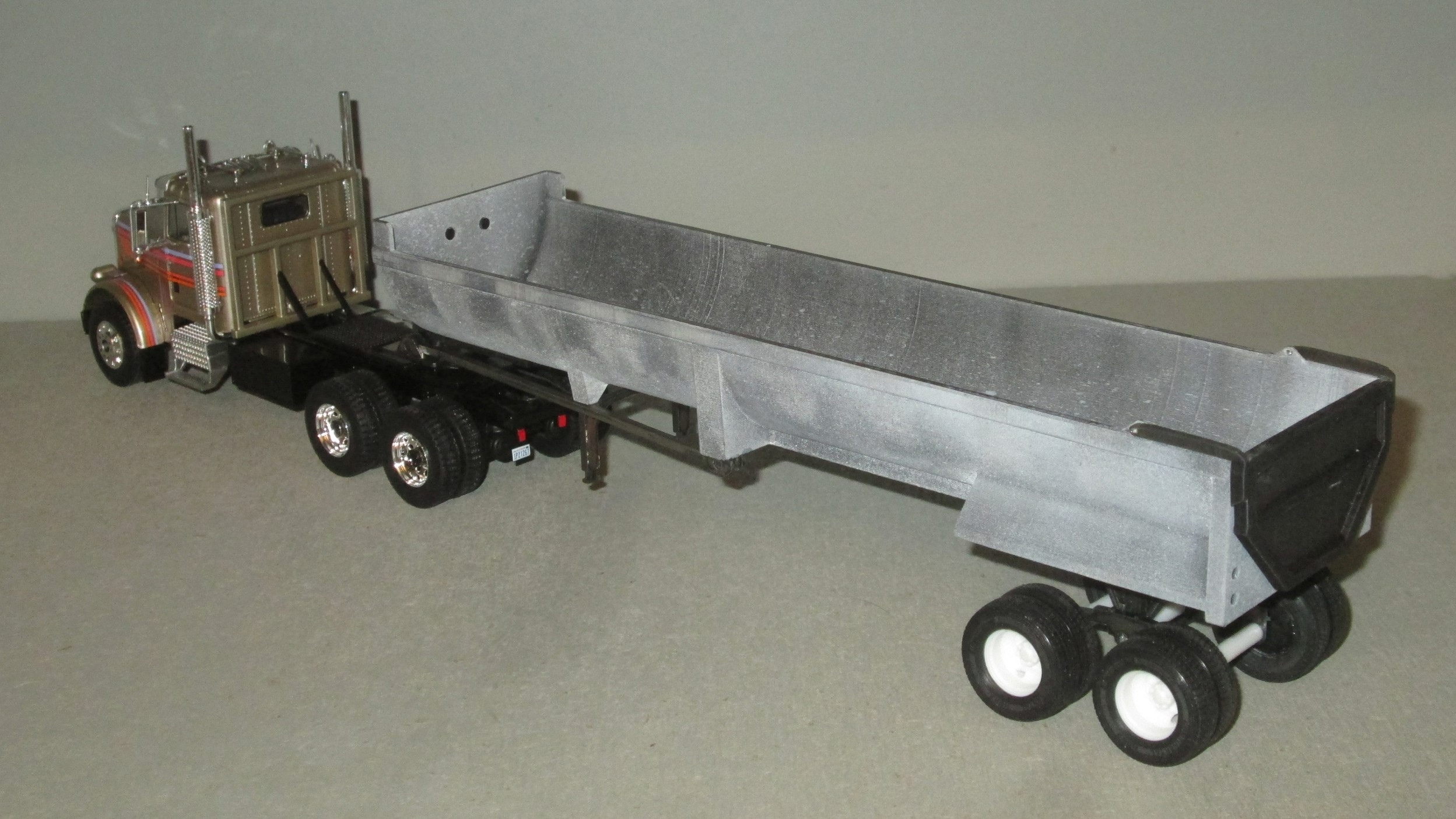 Сборная модель 1:43 Двухосный американский полуприцеп-самосвал с кузовом полутруба, Half round trailer Rock Master (Клен)