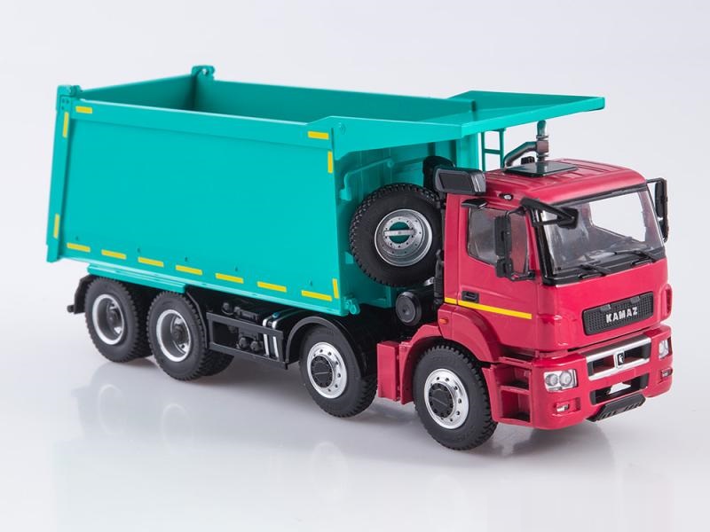 Масштабная модель 1:43 Четырехосный самосвал-углевоз 8х4 КАМАЗ-65801 Т5, кабина К4, красный, зеленый, Автоистория (АИСТ)