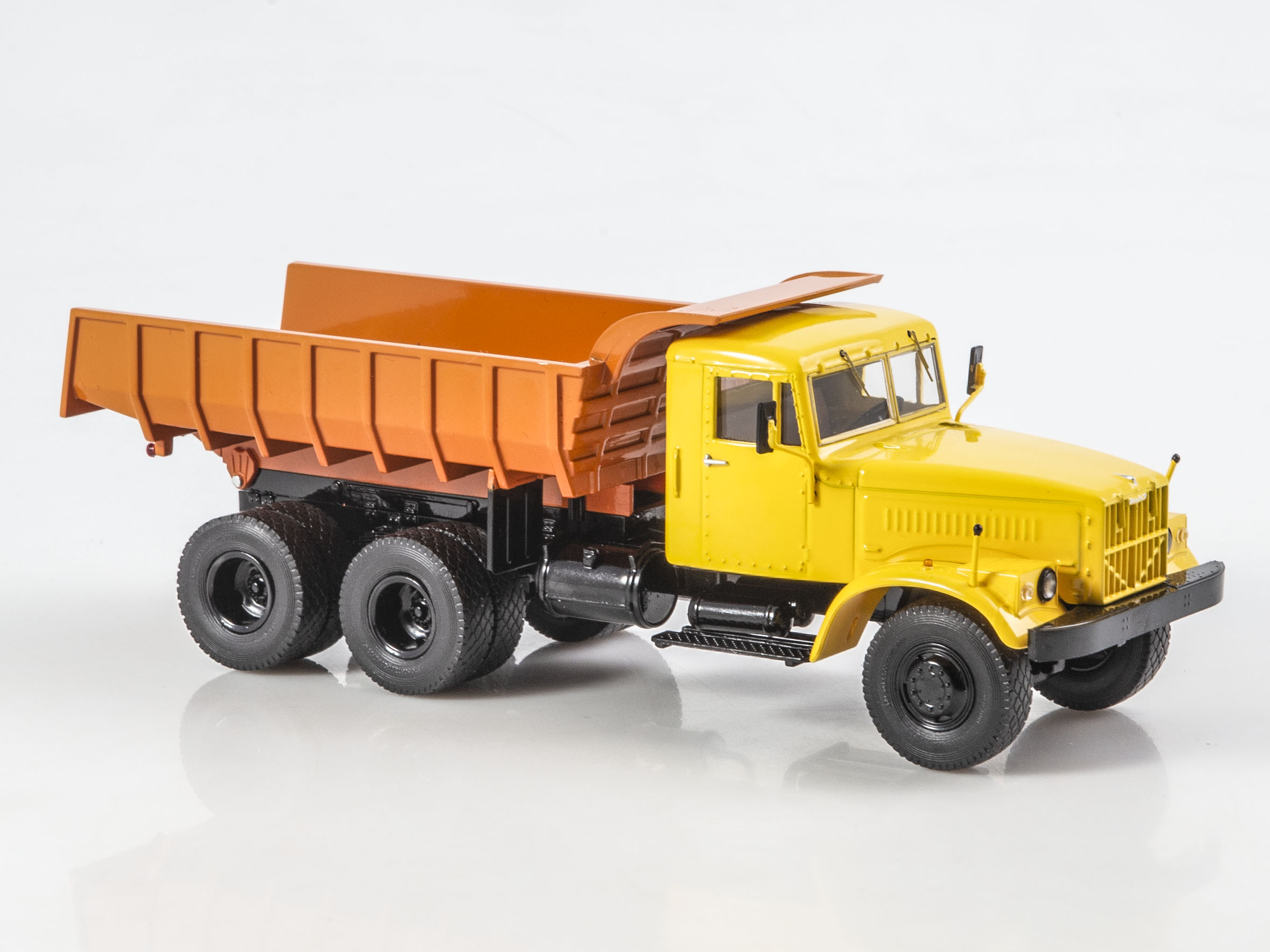Масштабная модель 1:43 Советский трехосный самосвал 6х4 КрАЗ-256Б1, желтый, оранжевый, Start Scale Models (SSM)