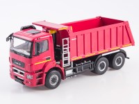 Коллекционная масштабная модель 1:43 Трехосный дорожный самосвал 6х4 КАМАЗ-6520-21010-053, кабина К4, красный