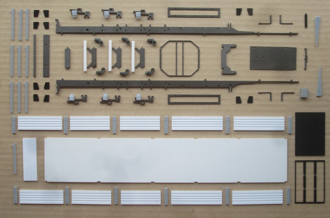Комплект металлических и пластиковых деталей для сборки: Трехосный бортовой полуприцеп НефАЗ-93341-24-07 с кониками и усиленной передней стенкой