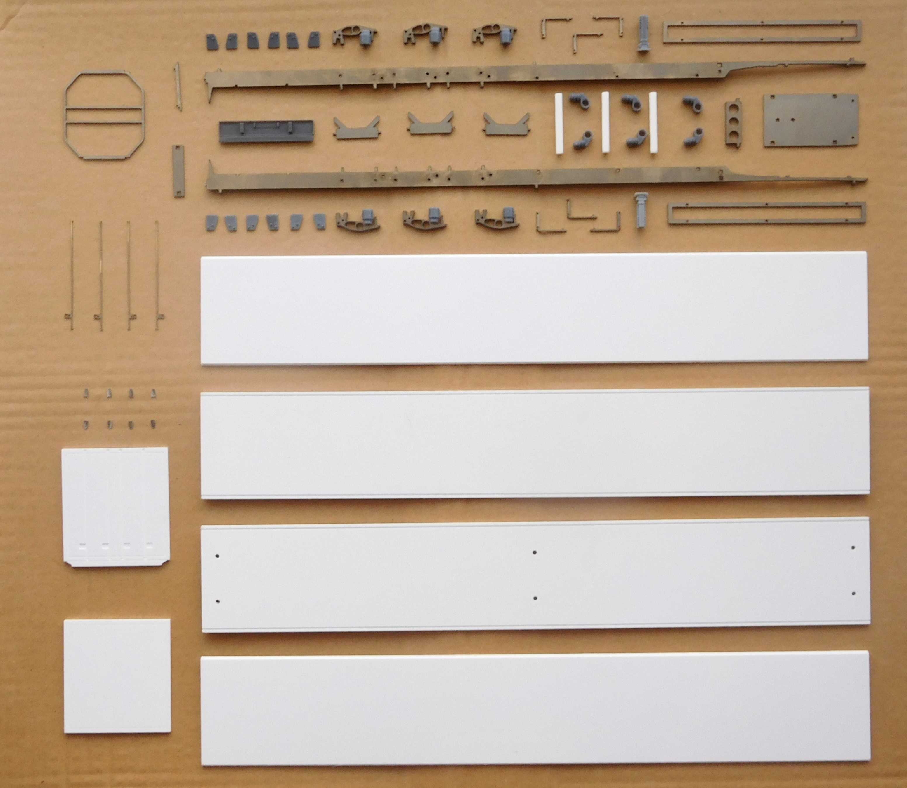 Комплект металлических и пластиковых деталей для сборки: Трехосный изотермический полуприцеп-фургон Тонар R3-16, модель -97855, длина 16,5 метров, для современных седельных тягачей