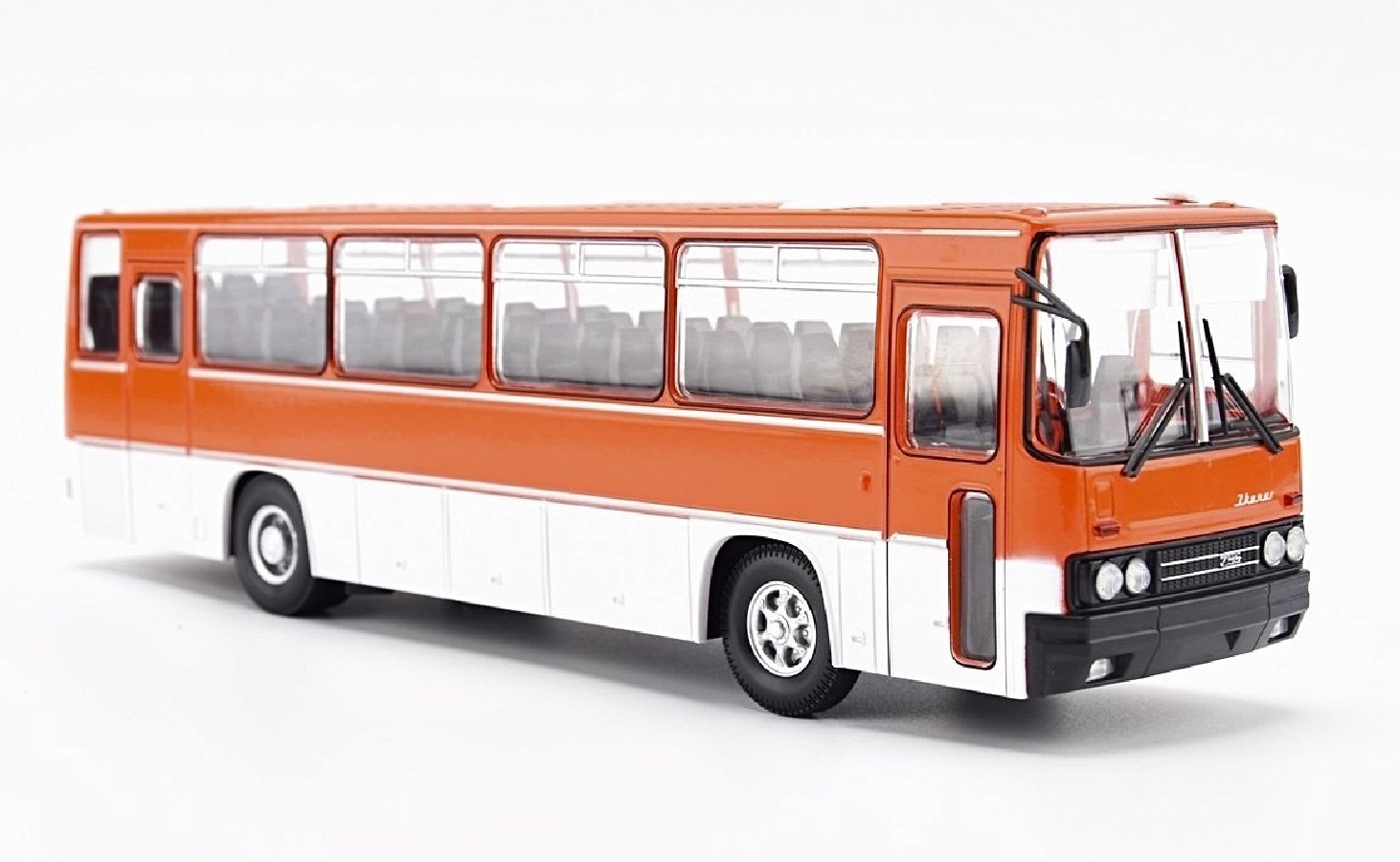 Коллекционная масштабная модель Междугородний автобус Икарус-256, красный, белый, с журналом "Наши Автобусы. Modimio №31, перевыпуск"